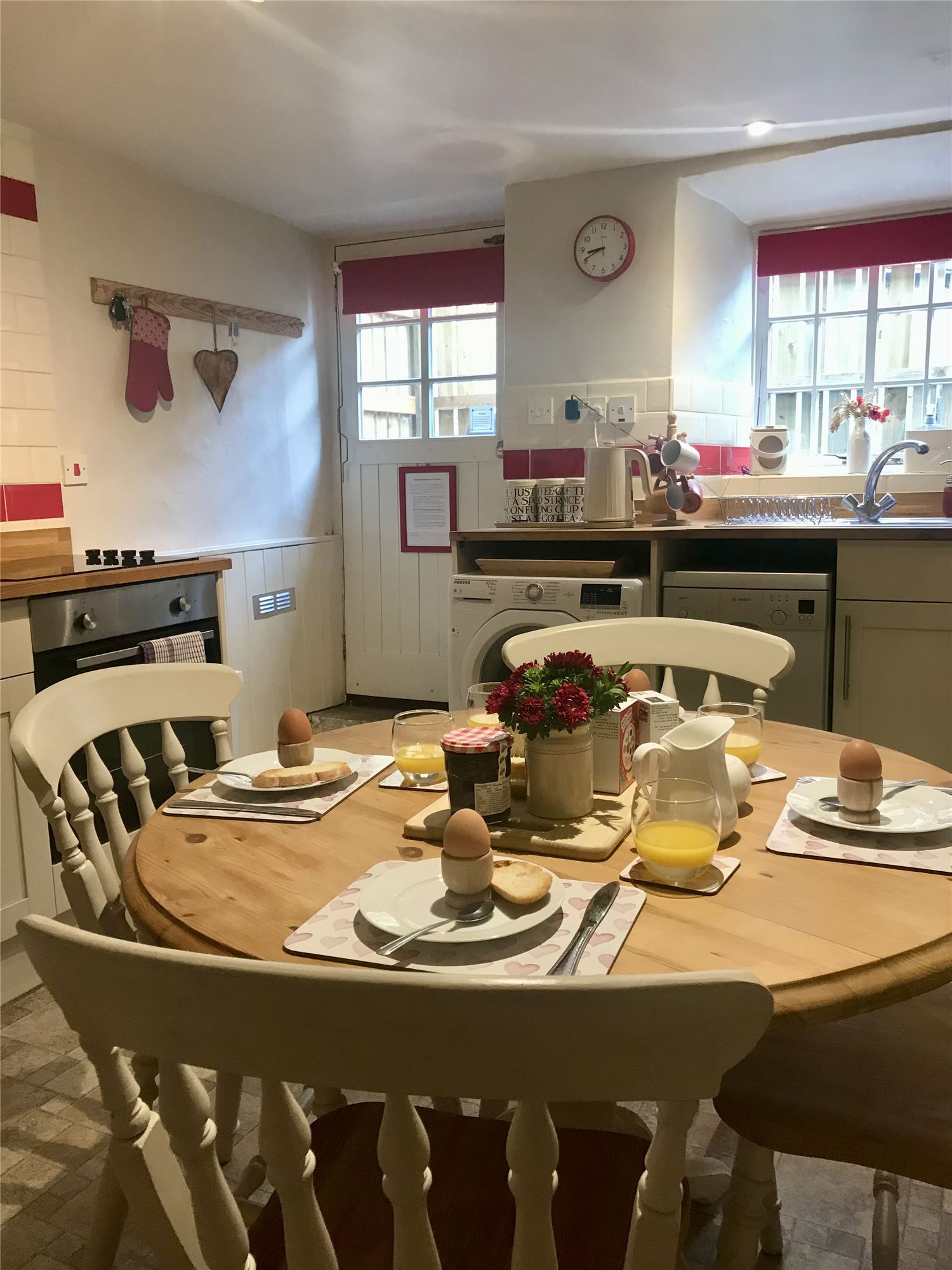 The kitchen comes fully equipped with a microwave, toaster, electric oven and hob, fridge/freezer, dishwasher, and washer/dryer. A selection of high-quality cooking utensils, ovenware, crockery, glassware, and cutlery is available to cater to all your self-catering needs, allowing you to enjoy the wonderful local produce from nearby Leyburn. The farmhouse-style table and chairs comfortably seat four for breakfast and dining.